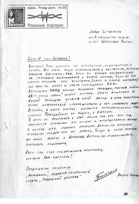 6. Письмо Ежи Литвинюка Председателю рязанского Мемориала