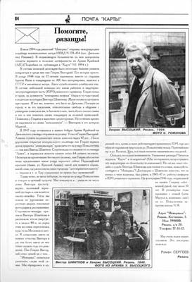 Публикация Российского исторического журнала "Карта" (Рязань) о лагерной судьбе Хенрика Высоцкого.