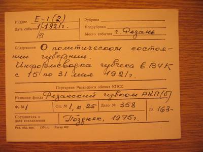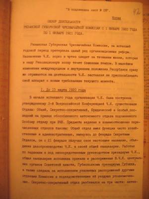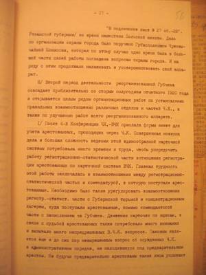 15. Из Отчета по деятельности коммунистической ячейки Рязанской Губчека Губкому РКП(б) за период с 20.01.1920 по 20.01.1921 гг.