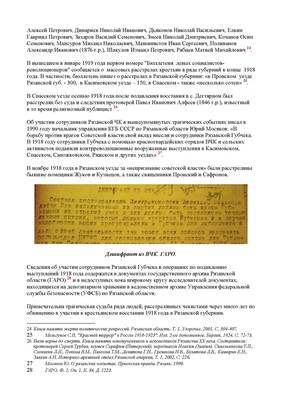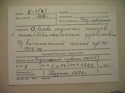 28. "О борьбе рязанских чекистов с контрреволюционным духовенством". Воспоминания рязанских чекистов, записанные сотрудниками Агитпропотдела Рязанского Губернского комитета ВКП(б): "Из истории и организации Рязанской губернской Чрезвычайной комиссии, борьба с контрреволюцией в губернии".