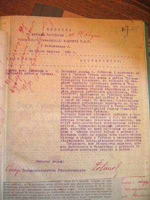 11. Доклад члена Коллегии ВЧК Уралова (Кислякова) Сергея Герасимовича о деятельности РязГубЧК.