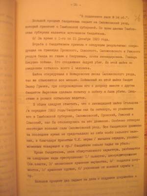 "Родионов также натолкнулся на факты преступной деятельности следователя Рязанской губернской ЧК Беляева, ездившего с отрядом для выяснения причин мятежа в Пронском уезде. Этот Беляев, помимо пьянства в уезде, арестовал любовника одной особы, а в обмен на его свободу предложил ей гнусность, на которую ей пришлось согласиться".