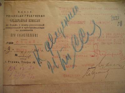 54. Фрагмент бланка Рязанской губернской ЧК. 1919 год.