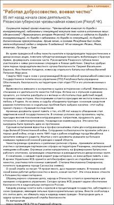 31. УФСБ по Рязанской области о 85-летии начала деятельности Рязанской губернской чрезвычайной комиссии (Рязгуб ЧК).