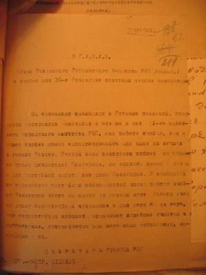 19. Отзыв Рязанского Губкома и Рязанской губернской ЧК о ячейке при 30-х пехотных курсах комсостава от 07.02.1921 г.