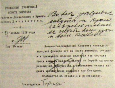 10.Из Доклада об организации Рязанской Чрезвычайной Комиссии и милиции.