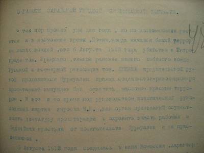 Публикуется по: Ратьковский И.С. Красный террор и деятельность ВЧК в 1918 году. Санкт-Петербург. Издательство университета. 2006.