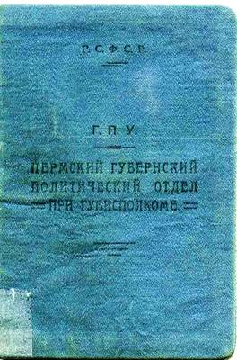 23. Обложка удостоверения Пермского Губотдела ГПУ Болотова Степана Архиповича. 1923.