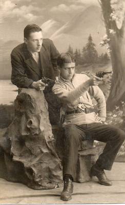 Фотография уроженцев деревни Тупики Острожской волости Оханского уезда Пермской губернии. Стоит чекист Болотов Степан Архипович. Сидит летчик Болотов Филипп Ефимович. Электронная копия фотографии с сайта "Оханский перекресток" (http://ohansk.ru/gallery/910/) получена в феврале 2010 года.