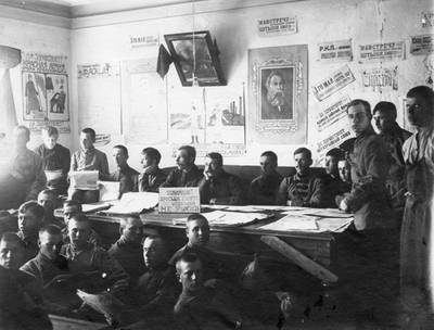 Фотография сотрудников Пермской ЧК в читальне. Ок. 1921.
