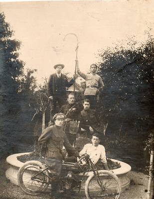 Групповая фотография чекистов Черноморского ПП ОГПУ. В центре клумбы стоит Болотов Степан Архипович. Новороссийск. 1927.