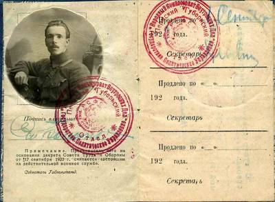 Удостоверение Особого отдела ВЧК при 3-й Армии Восточного Фронта на имя Болотова Степана Архиповича. 1919.