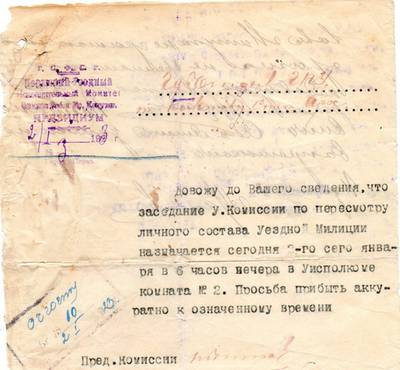 Письмо Исполкома Пермского Уездного Комитета Болотову Степану Архиповичу. 1923.