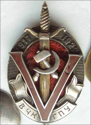 Нагрудный знак 5 лет ВЧК-ГПУ чекиста Болотова Степана Архиповича за N 242. 1923. Находится в частной коллекции.