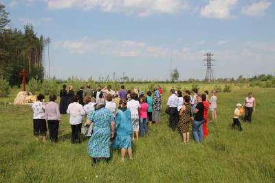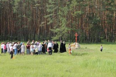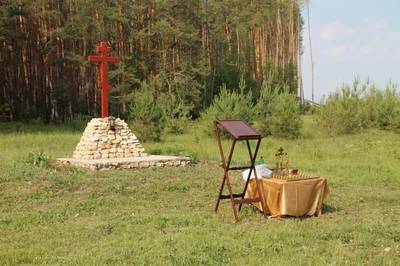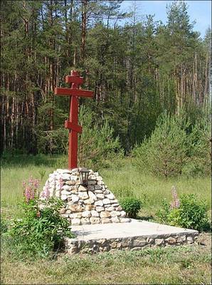 Памятный знак, Поклонный Крест, на месте расстрела большевиками в ноябре 1918 года крестьян-повстанцев сел Дегтяное и Санское и протоиерея Алфеева Павла Ивановича. с. Дегтяное Спасского района Рязанской области. Координаты: 54°26'15.84"С. 40°38'56.50"В.