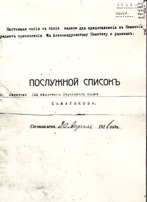 2007. Справка Российского государственного военно-исторического архива (РГВИА) о службе Юрина Павла Семеновича, 1877 г.р.