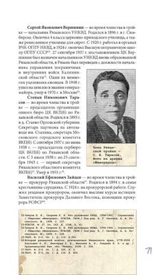 "Политические репрессии в Рязани. Путеводитель / Сост. А.Ю. Блинушов. – Красноярск : ПИК "Офсет", 2011. – 232 страницы." Стр. 66 - 80