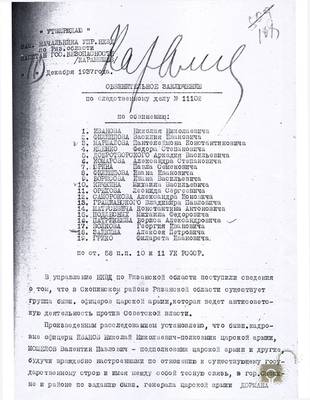 1. Справка о групповом деле "Скопинской антисоветской военно-офицерской организации". Рязанская область. 1937.