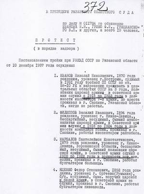 25. Протест заместителя прокурора по делу 19 бывших офицеров, проживавших в городе Скопин Рязанской области