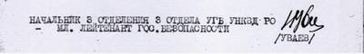 Уваев, начальник 3-го отделения 3-го отдела УГБ УНКВД по Рязанской области. младший лейтенант госбезопасности