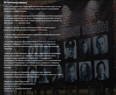 Более тридцати тысяч жителей и уроженцев Рязанской области пострадали от политических репрессий в советское время. Эта трагедия коснулась многих рязанских семей: кто-то из родственников был раскулачен, кого-то приговорили за "неправильную" фамилию или происхождение, многих расстреляли по сфабрикованным обвинениям для статистики. Родственники расстрелянных и сгинувших в лагерях не знают, где могилы их близких. Региональный Памятник станет символической могилой, для многих – местом очень личным, воплощенной и материализованной справедливостью. Для будущих поколений памятник будет напоминанием о страшной трагедии, которая не должна повториться.