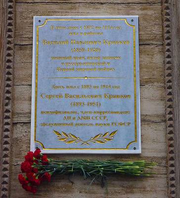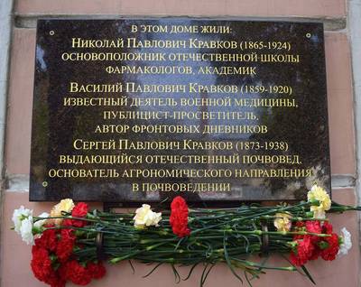 23. Мемориальная доска в честь В.П. и С. В. Кравковых в Рязани. Ул. Салтыкова-Щедрина, 34