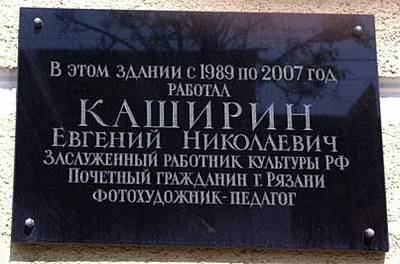 6-1. Мемориальная доска Евгению Николаевичу Каширину на здании Рязанского Художественного училища. Историк, фотохудожник Евгений Каширин был одним из первых исследователей государственного политического террора в регионе.