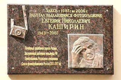 6-3. Мемориальная доска в честь Каширина Евгения Николаевича. Рязань. Улица Полонского, дом 1. Историк, фотохудожник Евгений Каширин был одним из первых исследователей государственного политического террора в регионе.