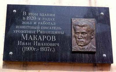 Памятная доска в Рязани на доме, где жил Иван Макаров. Улица Астраханская (Ленина), дом 38. Доска была установлена 24.02.2010 года. Автор памятной доски председатель Рязанского отделения союза художников России Алексей Анисимов. Координаты: 54.628283, 39.746023. Место на Яндекс-карте: https://yandex.ru/maps/-/CDx5ZC-b