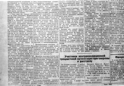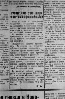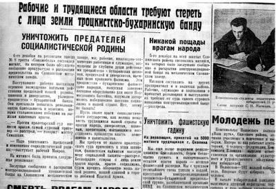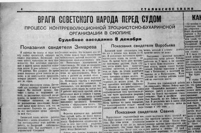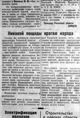 12. Репортажи ненависти партийной газеты о деле "контрреволюционной троцкистской вредительской группы" на Скопинском механическом заводе