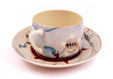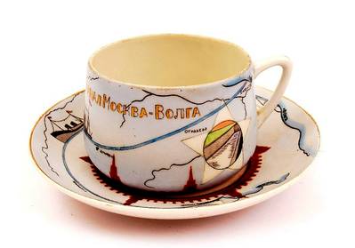 Наградная чайная пара "Канал "Москва-Волга", вручался сотрудникам НКВД, служившим в подразделениях Дмитровлага, строившего канал. Данная чайная пара, вероятно, первоначально принадлежала Симановскому Пинхусу Шоломовичу (1901-1940), заместителю начальника Дмитровского ИТЛ НКВД, начальнику 3 отделения каналстроя в весной-летом 1937-го года. Была выставлена летом 2011 года на продажу на антикварном аукционе.