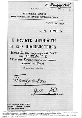 13. "Секретный" доклад Первого секретаря ЦК КПСС Н.С. Хрущева "О Культе личности и его последствиях". 1956.