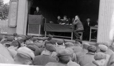 Сотрудники Рязанского лагерного управления НКВД. Агитационное мероприятие в лагере. 1940-е годы. Фотографии из личного архива историка Андрея Блинушова (Рязань). Фото 11