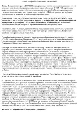 24. Фотокопия статьи председателя Рязанского "Мемориала" Андрея Блинушова о кладбище лагеря НКВД 178-454.