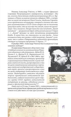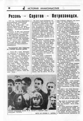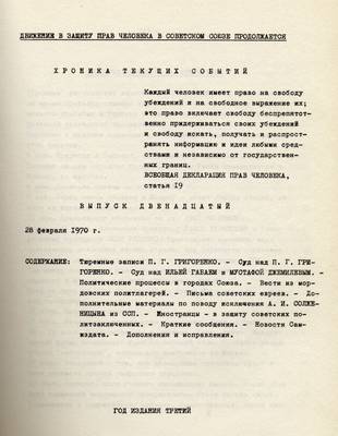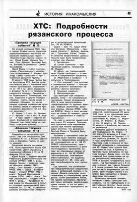 "Хроника текущих событий", N 14, 30 июня 1970 года: "... в Рязани арестована и осуждена группа из шести человек. Следствие велось органами КГБ, было привлечено более 100 свидетелей. Дело слушалось в помещении облсуда с 10 по 19 февраля 1970 г.