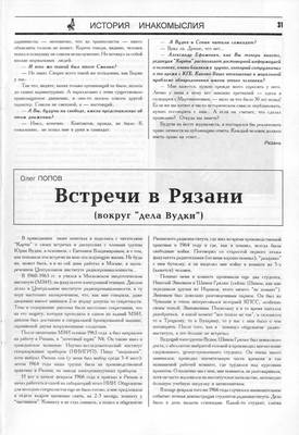 15. "Встречи в Рязани". Материал Олега Попова ("Дело Вудки"). 1997.