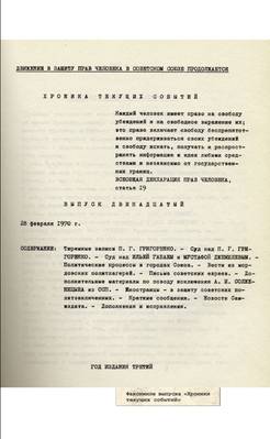 "Хроника текущих событий", N 14, 30 июня 1970 года: "... в Рязани арестована и осуждена группа из шести человек. Следствие велось органами КГБ, было привлечено более 100 свидетелей. Дело слушалось в помещении облсуда с 10 по 19 февраля 1970 г.