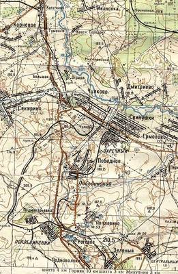 Колония, шахты, другие объекты Побединки (Победного) Скопинского района Рязанской области СССР.