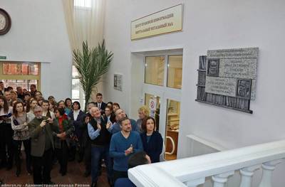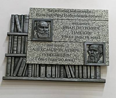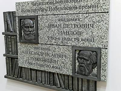 5-1. Мемориальная доска Нобелевским лауреатам писателю Александру Солженицыну и ученому-физиологу Ивану Павлову в Рязанской областной библиотеке им. Горького