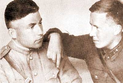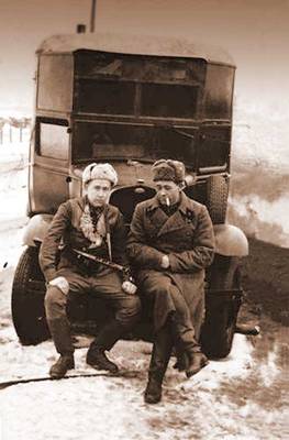 7. Командир батареи А. Солженицын и командир артиллерийского-разведдивизиона Е. Пшеченко.1943.