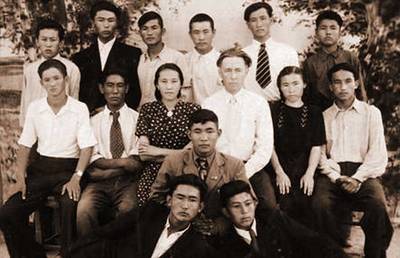 24. Учитель Солженицын со своим казахским классом. В ссылке. Кок-Терек. 1955 год.