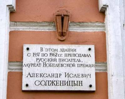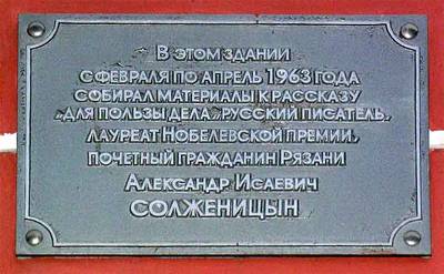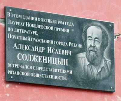 4. Мемориальная доска Александру Исаевичу Солженицыну на доме, где он жил в Рязани.