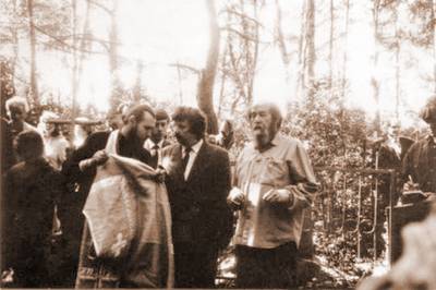 28. Солженицын А.И. на могиле Матрены Васильевны Захаровой. 1994 год.