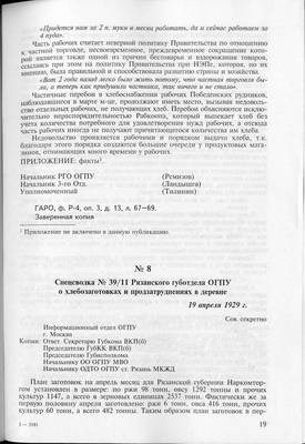 12. Спецсводка N 39/11 Рязанского Губотдела ОГПУ от 19.04.1929.