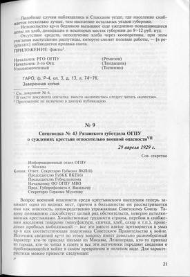 13. Спецсводка N 43 Рязанского губотдела ОГПУ о суждениях крестьян относительно военной опасности. 29 апреля 1929 г.