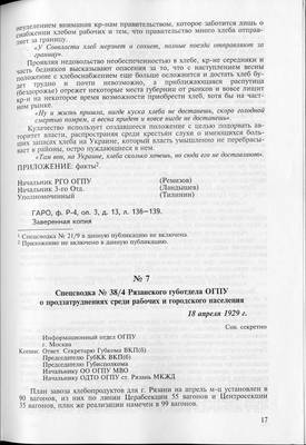 11. Спецсводка N 38/4 Рязанского Губотдела ОГПУ от 18.04.1929.