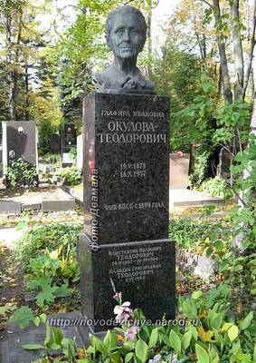 Теодорович Глафира Ивановна. 1878 - 1957. Бюст на захоронении на Новодевичьем кладбище Москвы.