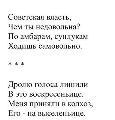 2-1 Частушки. Частушки о насильственной коллективизации, раскулачивании, советском государственном терроре в деревне