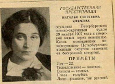 В казематах Петербургского Дома Предварительного Заключения Наталья Климова написала знаменитое письмо «Рязанским друзьям» («Письмо перед казнью»), которое было напечатано осенью 1908 года в журнале «Образование» рядом с романом Марселя Прево и впоследствии обошло весь мир.